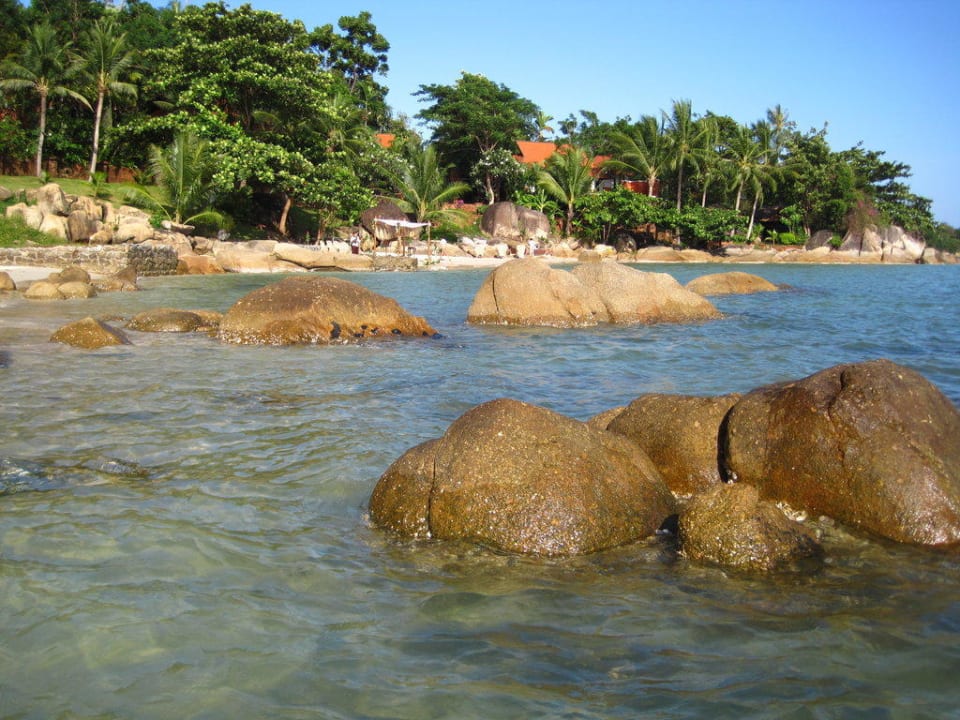 Blick auf den Strand, der unterhalb des Spa Bereichs des Hotels liegt