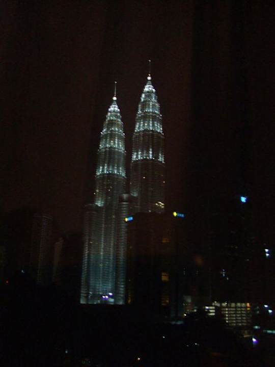 Bei Blick aus dem Fenster hat man diese Sicht auf die Twin Towers.
