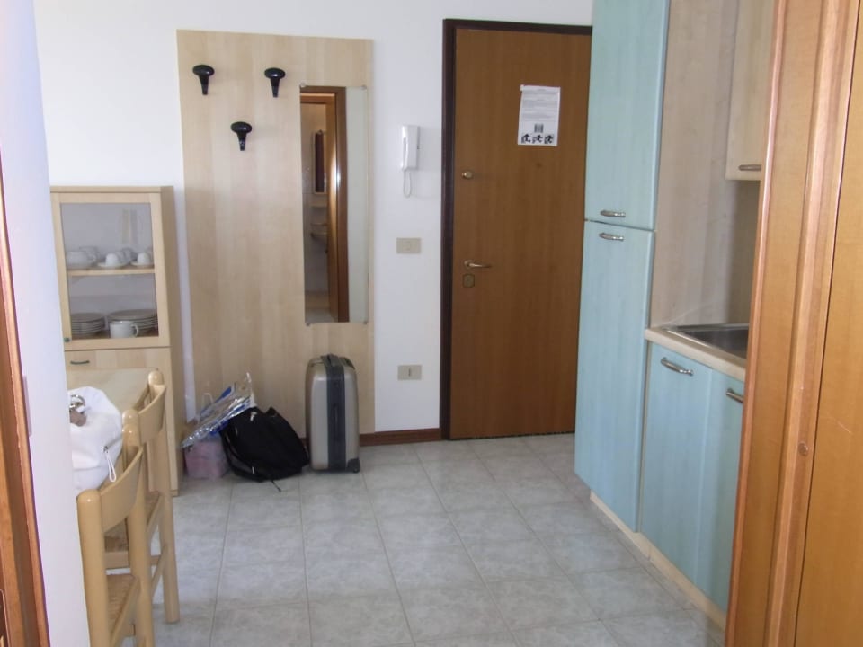 Blick vom Bad in den Eingangsbereich/Wohnraum/Küche