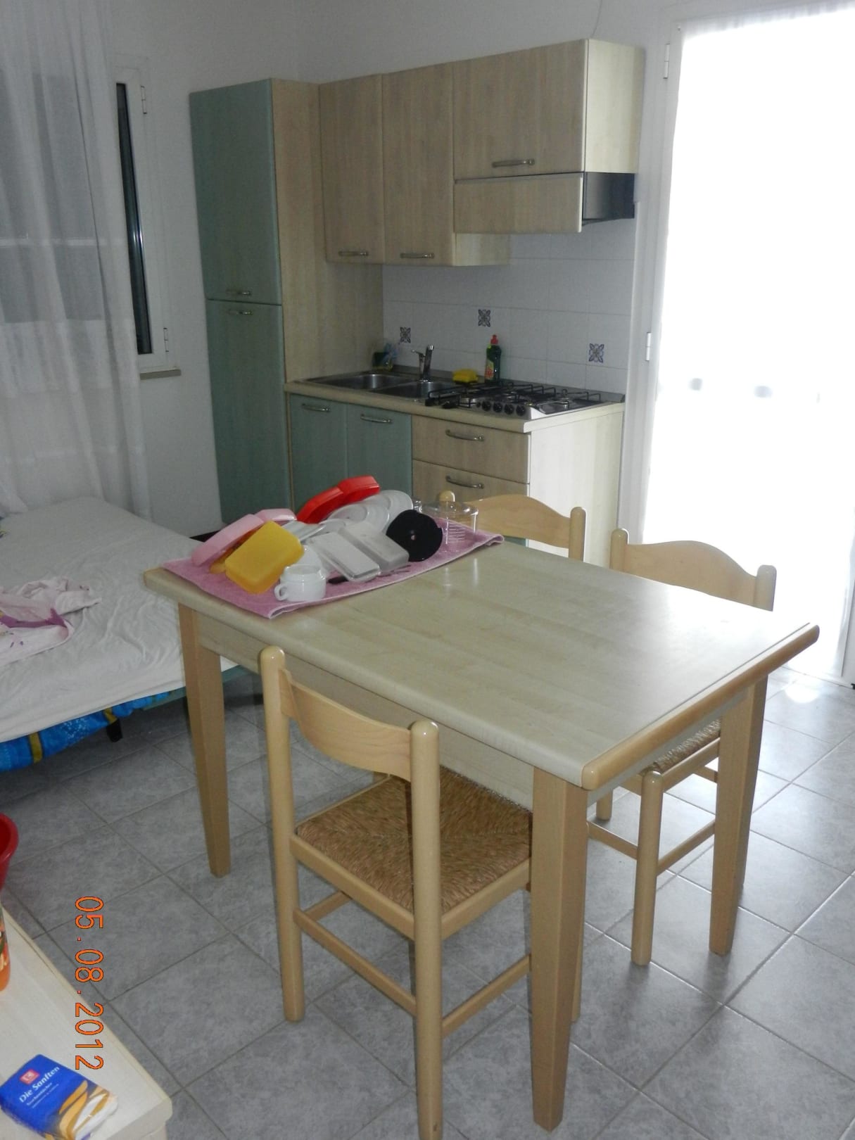 Küche mit Esszimmer und Schlafcouch