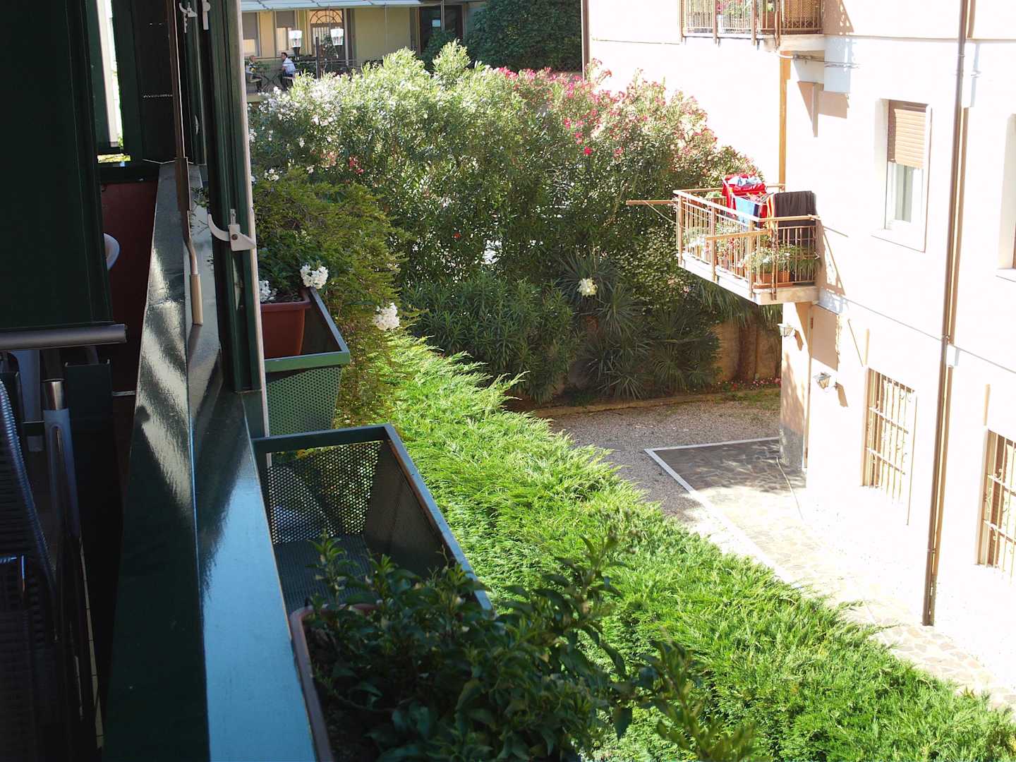 Blick vom Balkon in den ruhigen Innenhof