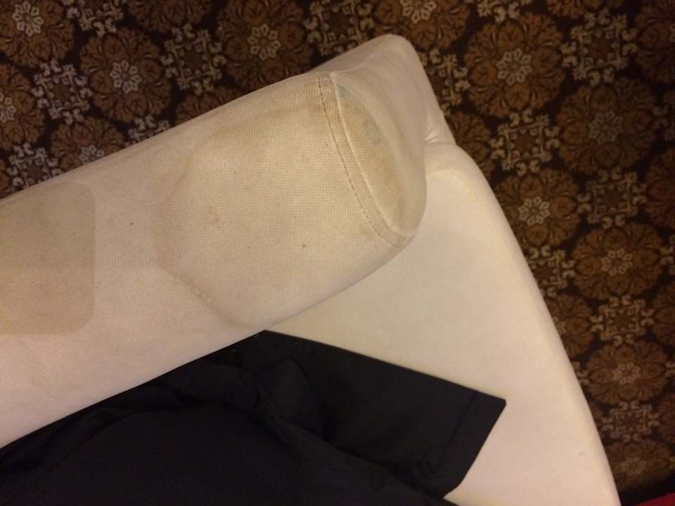 LobbySessellehne in der Lobby, die sich klamm anfühlte, obwohl diese Flecken wohl schon länger da gewesen zu scheinen.