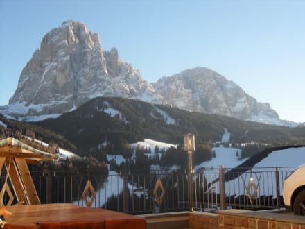 Blick von der Terrasse auf Lang- u. Plattkofel