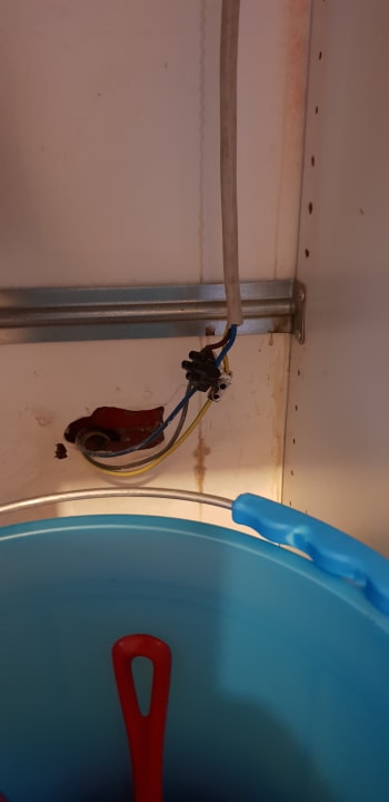 ZimmerKüche,Starkstromkabel mit Lüsterklemmen geflickt,direkt daneben Wasserleitung die defekt war,ebenfalls starker Schimmelbefall.....