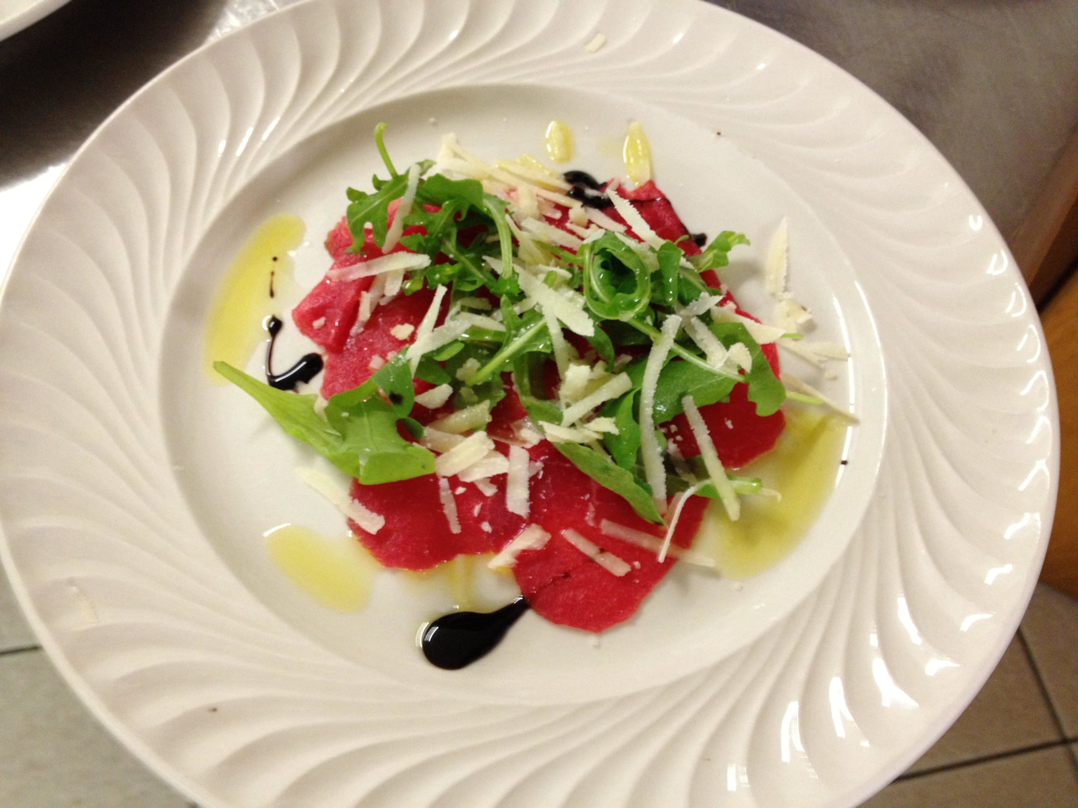 Carpaccio vom Jungrind mit Rucola und Parmesanspli