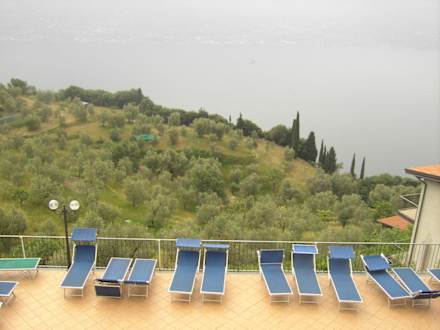 Aussicht auf den Gardasee und die Liegen am Kinderbecken