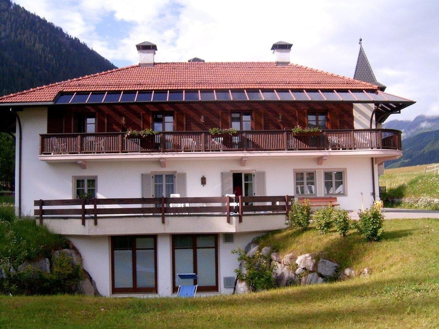 Blick von der Seite auf das HausIm unteren Teil ist der Wellnessbereich untergebracht.