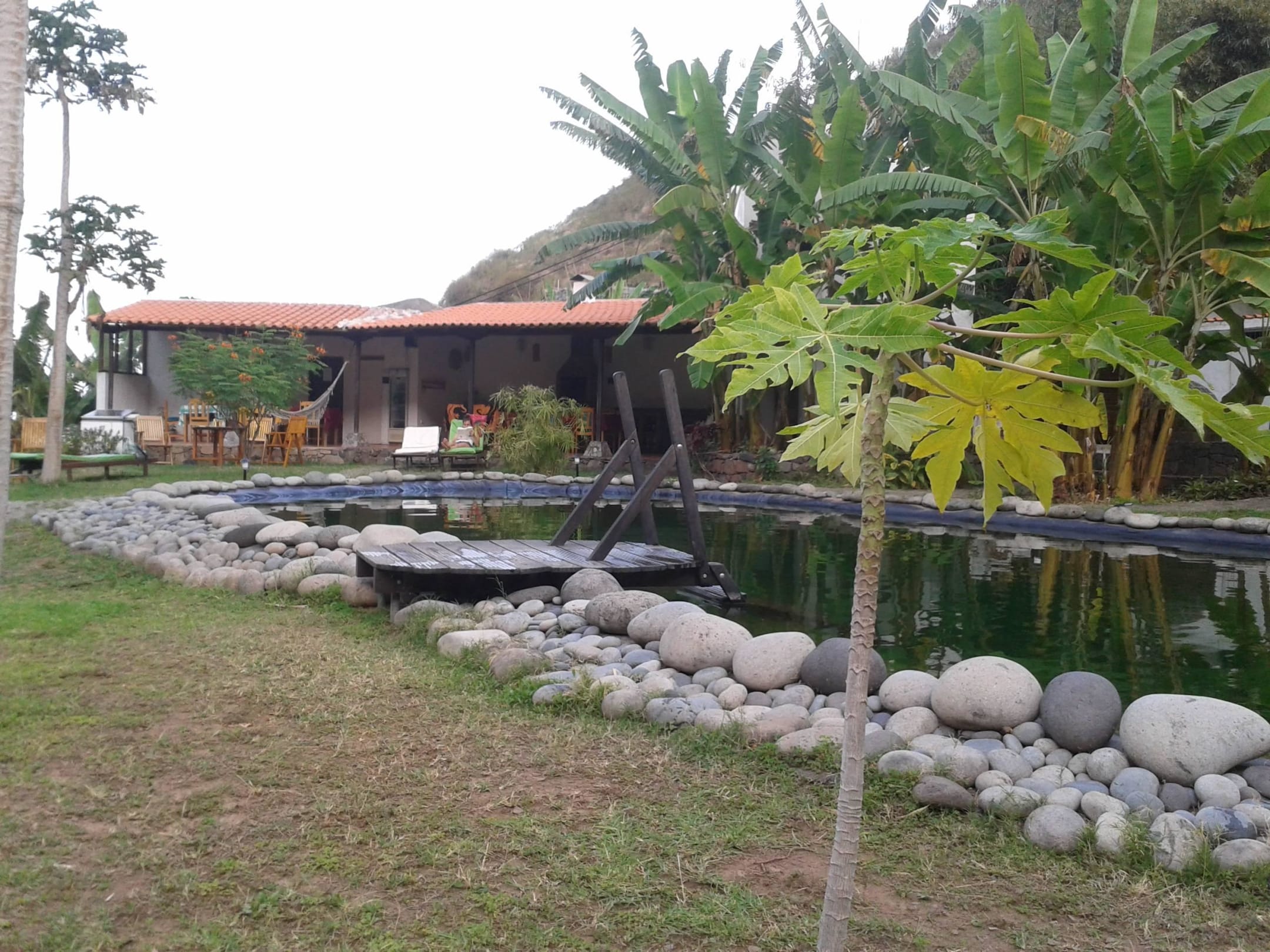 Schwimmteich mit Blick zum Essensbereich
