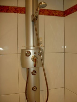 Blick zur Dusche mit Sprühknöpfen