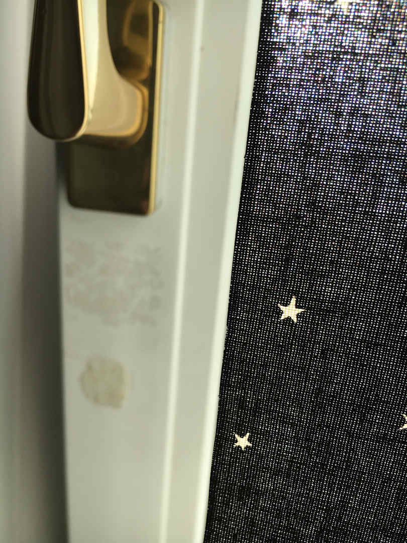 Alter Kleber am Fenster