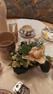Auch das Blumengesteck hat schon mal bessere Zeiten gesehen