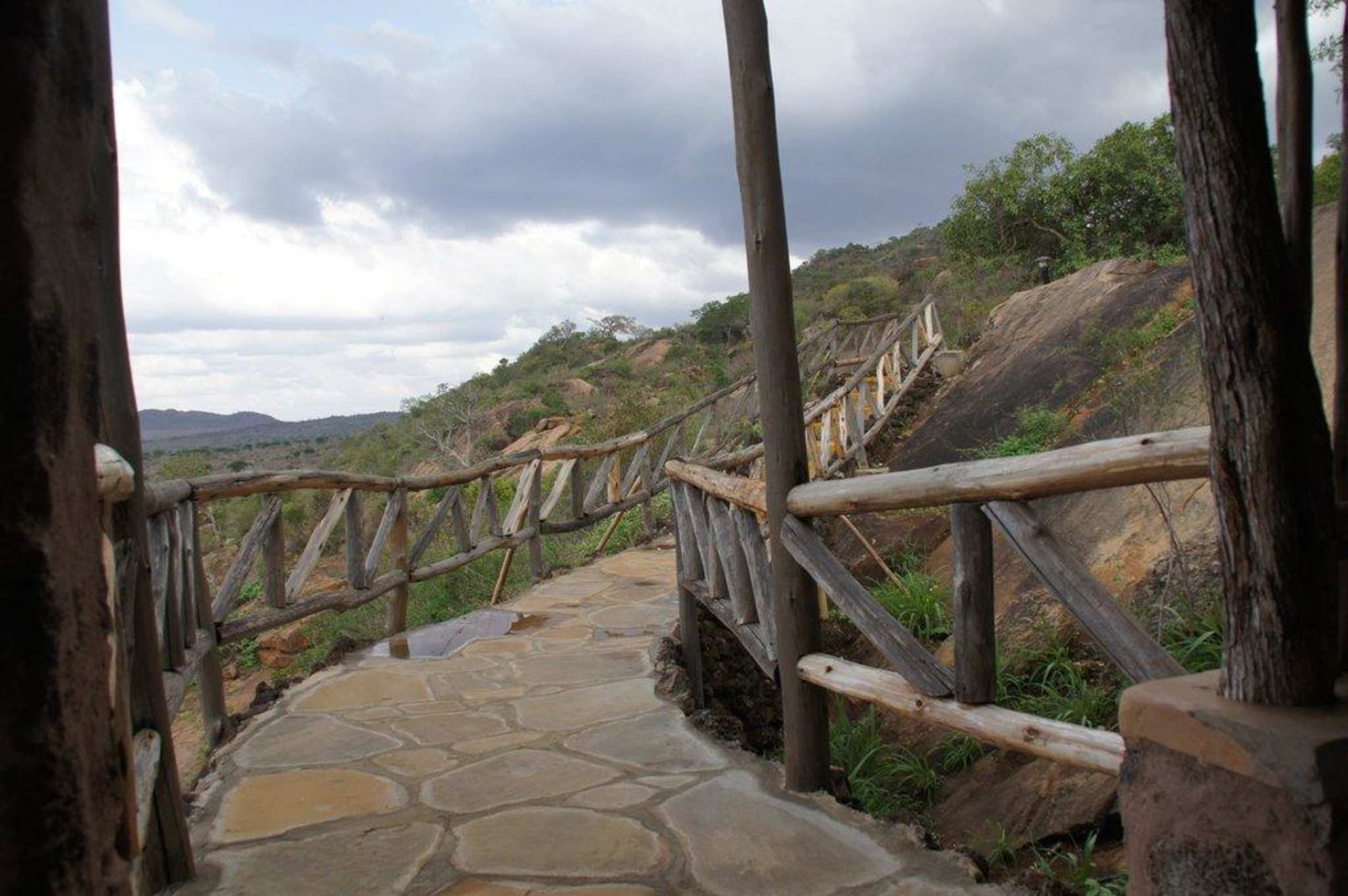 Blick von der Terrasse zum Leopardenfelsen