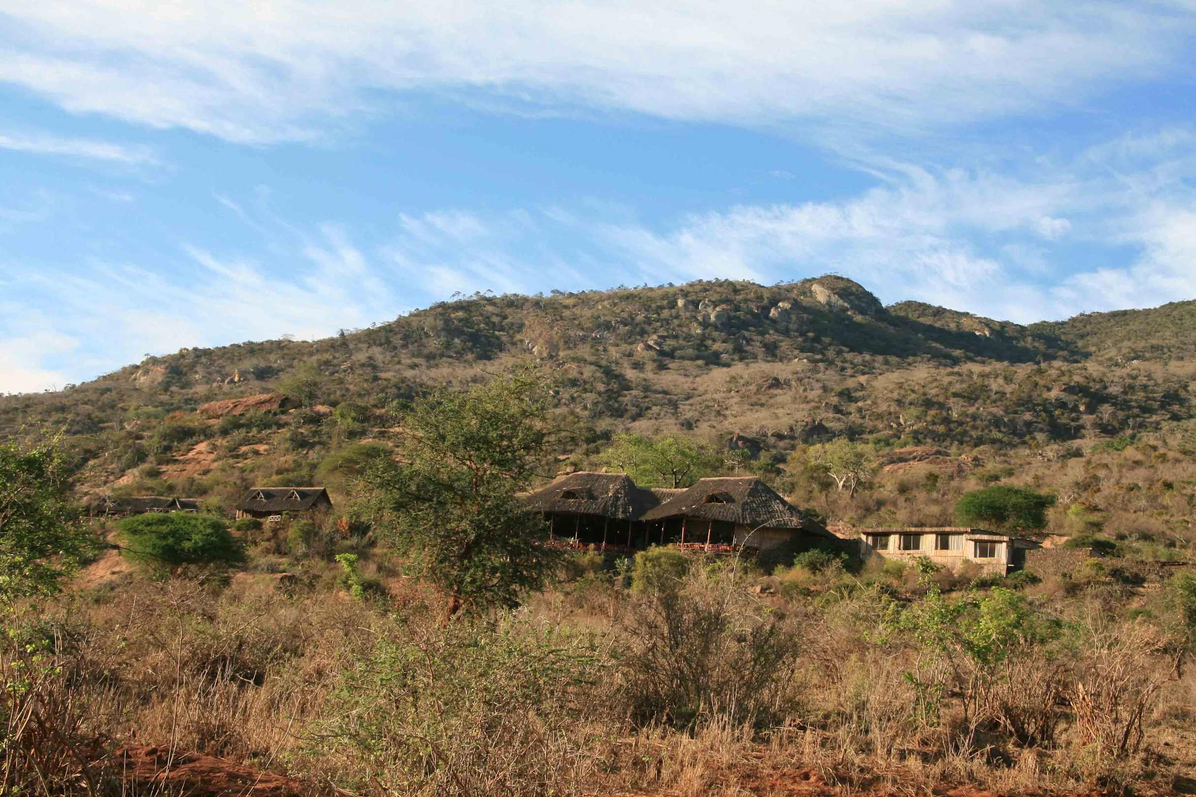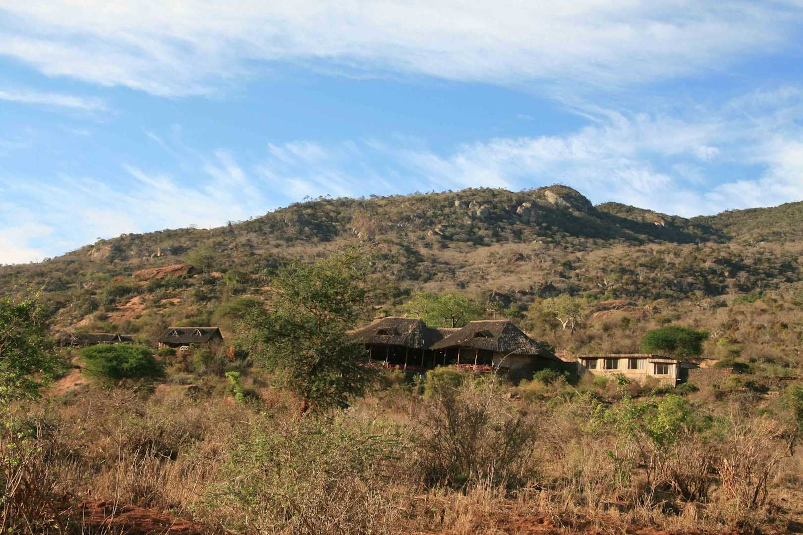 Blick vom Tal auf die Lodge