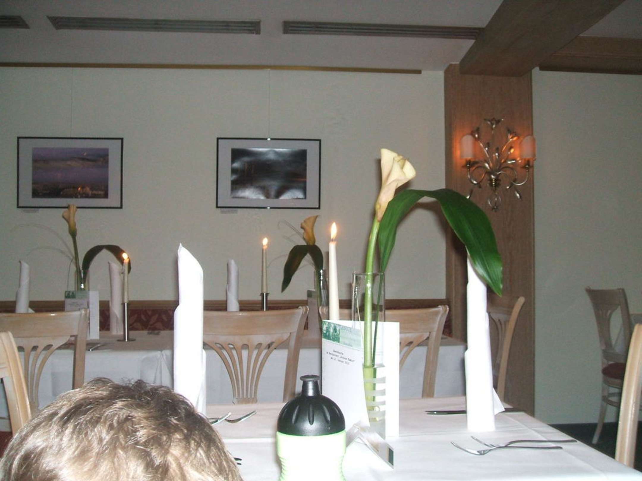 Rother Kamin beim Abendessen