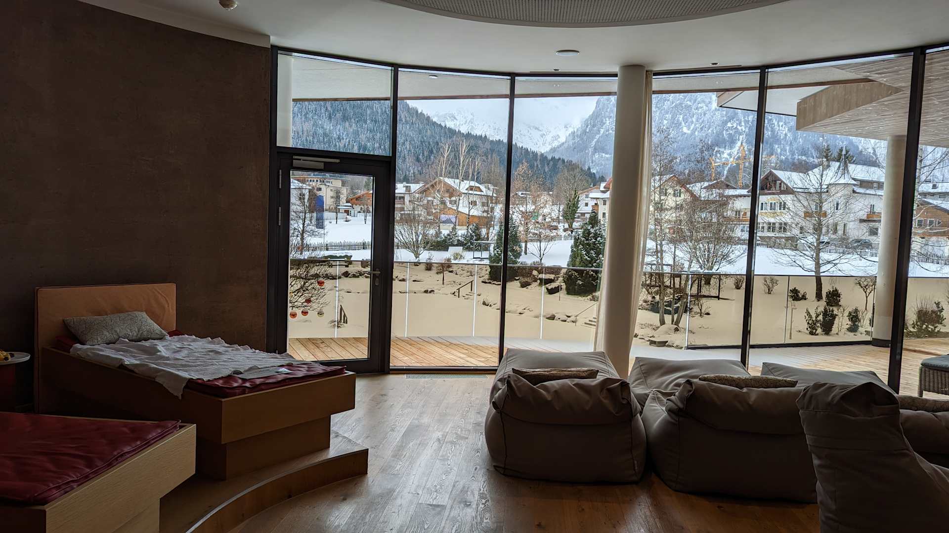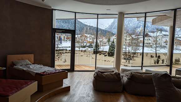 Blick vom Ruhebereich im Spa Richtung Karwendeltäler