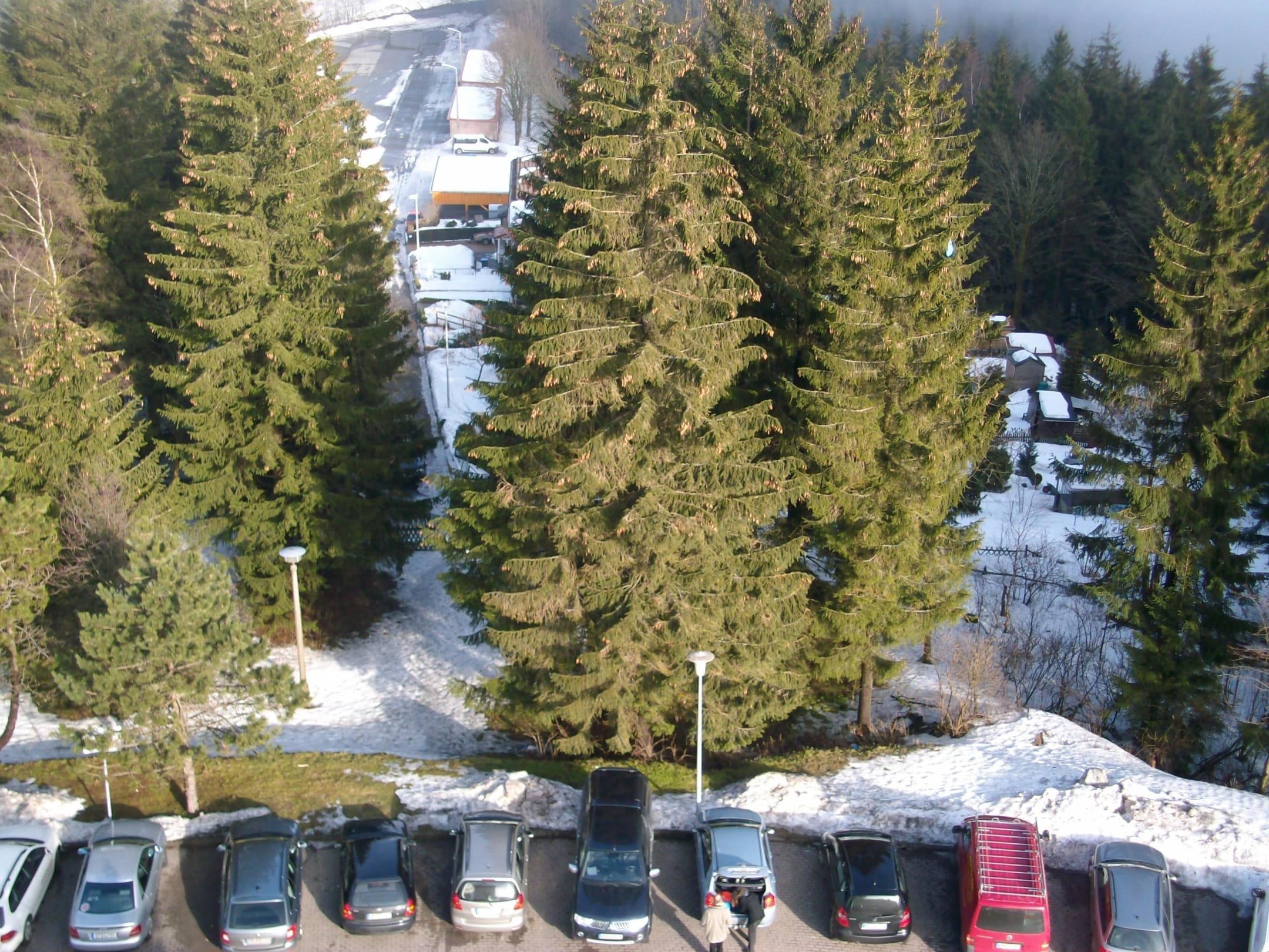 Parkplatz mit Blick auf einzelne Wohnhäuser