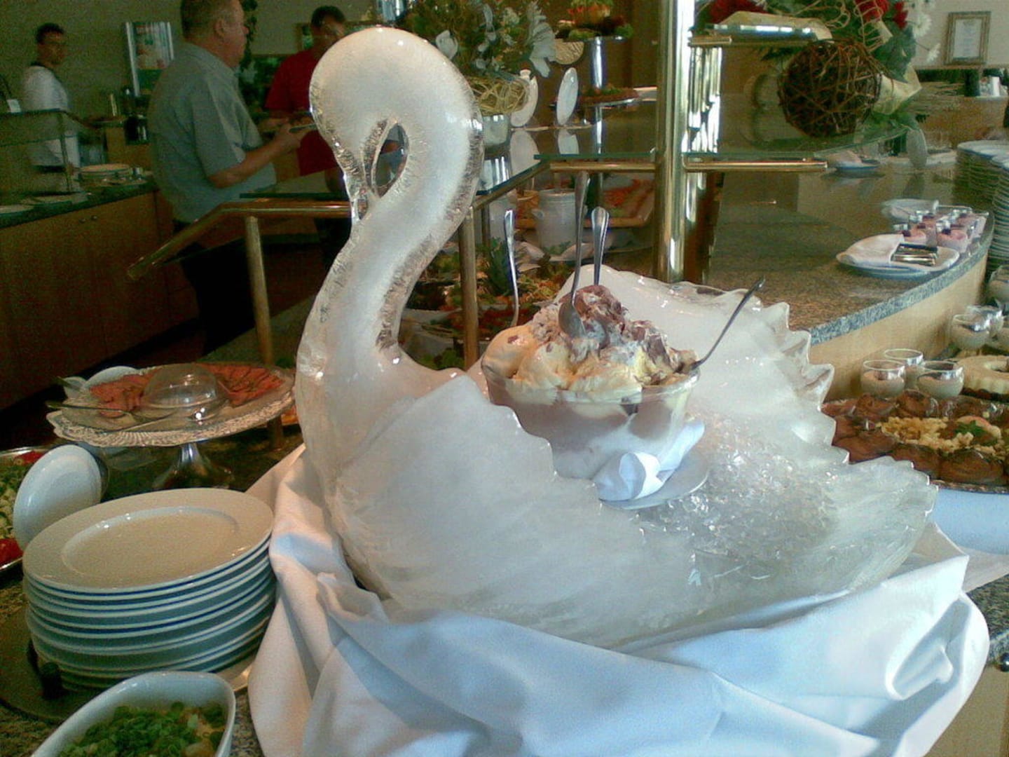 Schwan aus klarem Eis mit Speiseeis