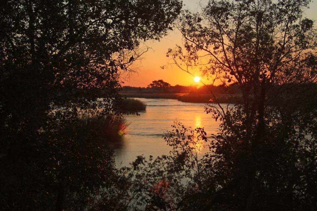 Sonnenuntergang über Okavango von unserer Terrasse