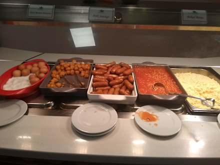 Frühstück- Rührei war absolut geschmscklos und hell- Würstchen aus England und nur Engländer können diese essen- Bohnen aus der Dose wie Suppe nicht abgebunden.