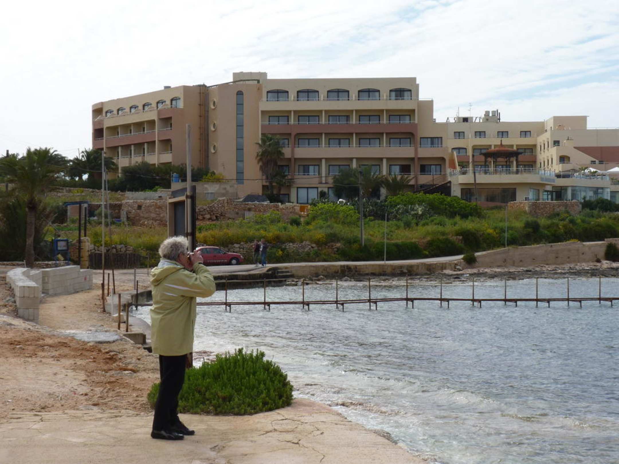 Hier kann man das Hotel von der Rück- bzw. Seitenansicht sehen. Wo der unfertige Steg zu sehen ist, ist der "hoteleigene" Strand. :-(