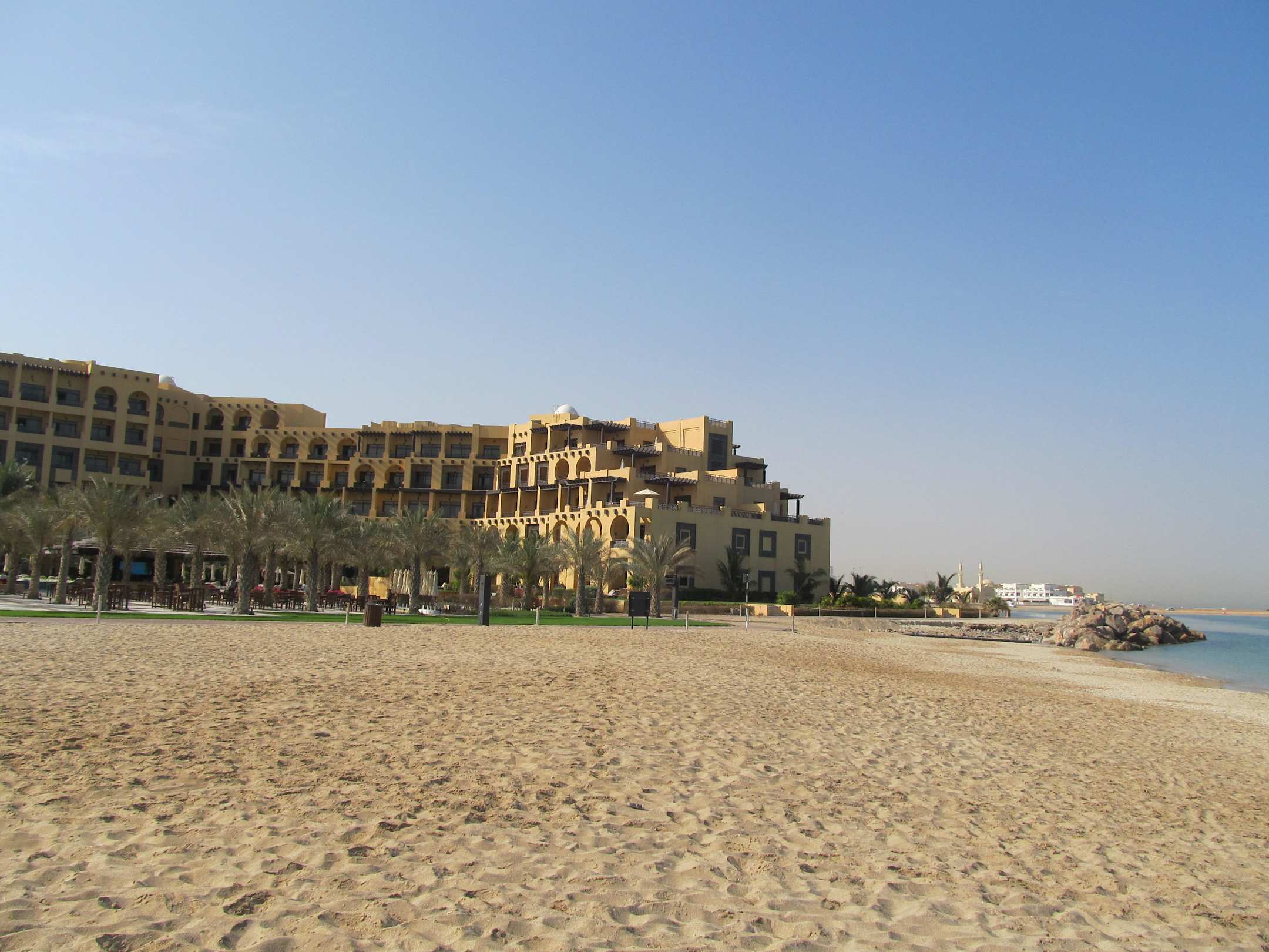 Blick vom Strand zum Haupthaus (linker Flügel) Rixos Al Mairid Ras Al Khaimah