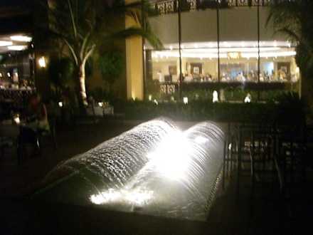 Springbrunnen vor dem Hauptrestaurant am abend