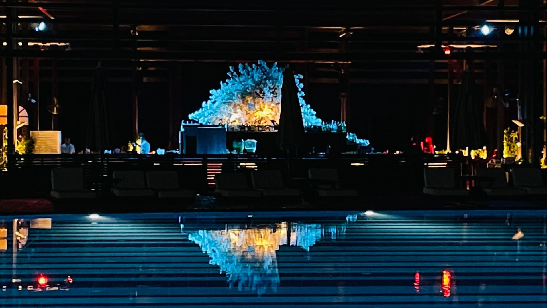Blick am Abend vom Pool in Richtung Beach Bar