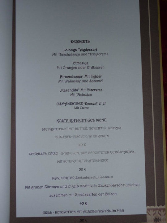 Menukarte Osmanisches RestaurantDessertkarte + Menus gegen Gebühr