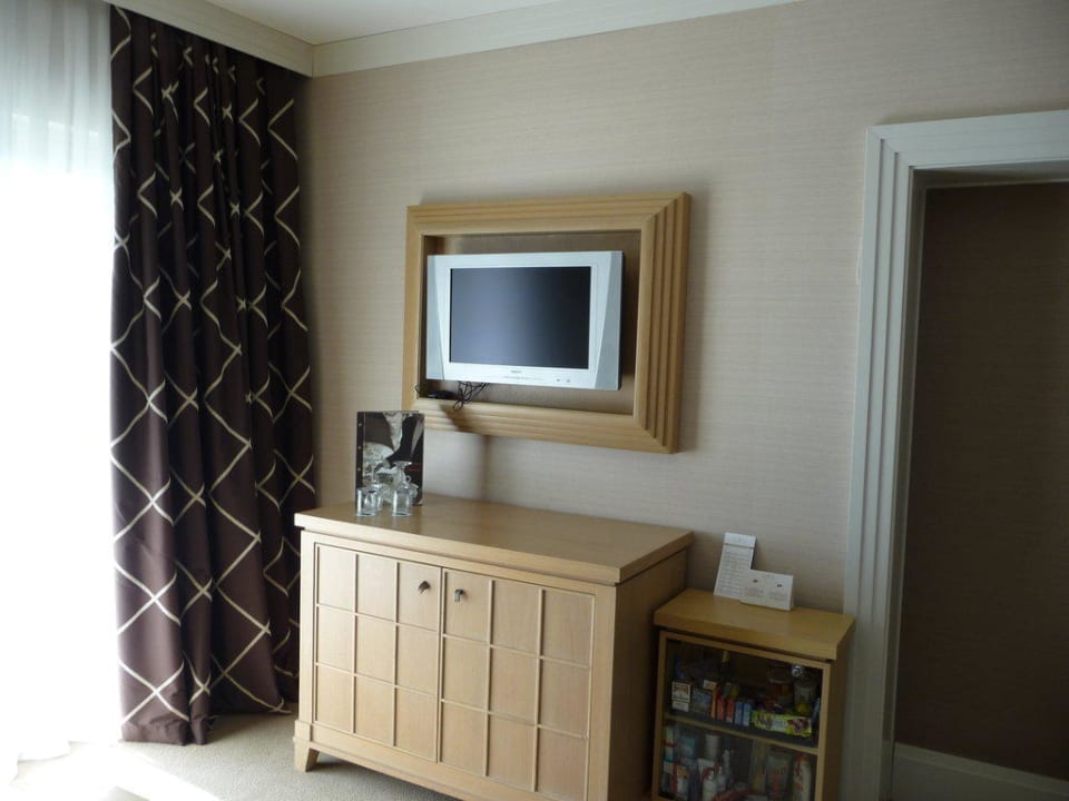 Fernseher mit Minibar-Safeschrank und Maxibar
