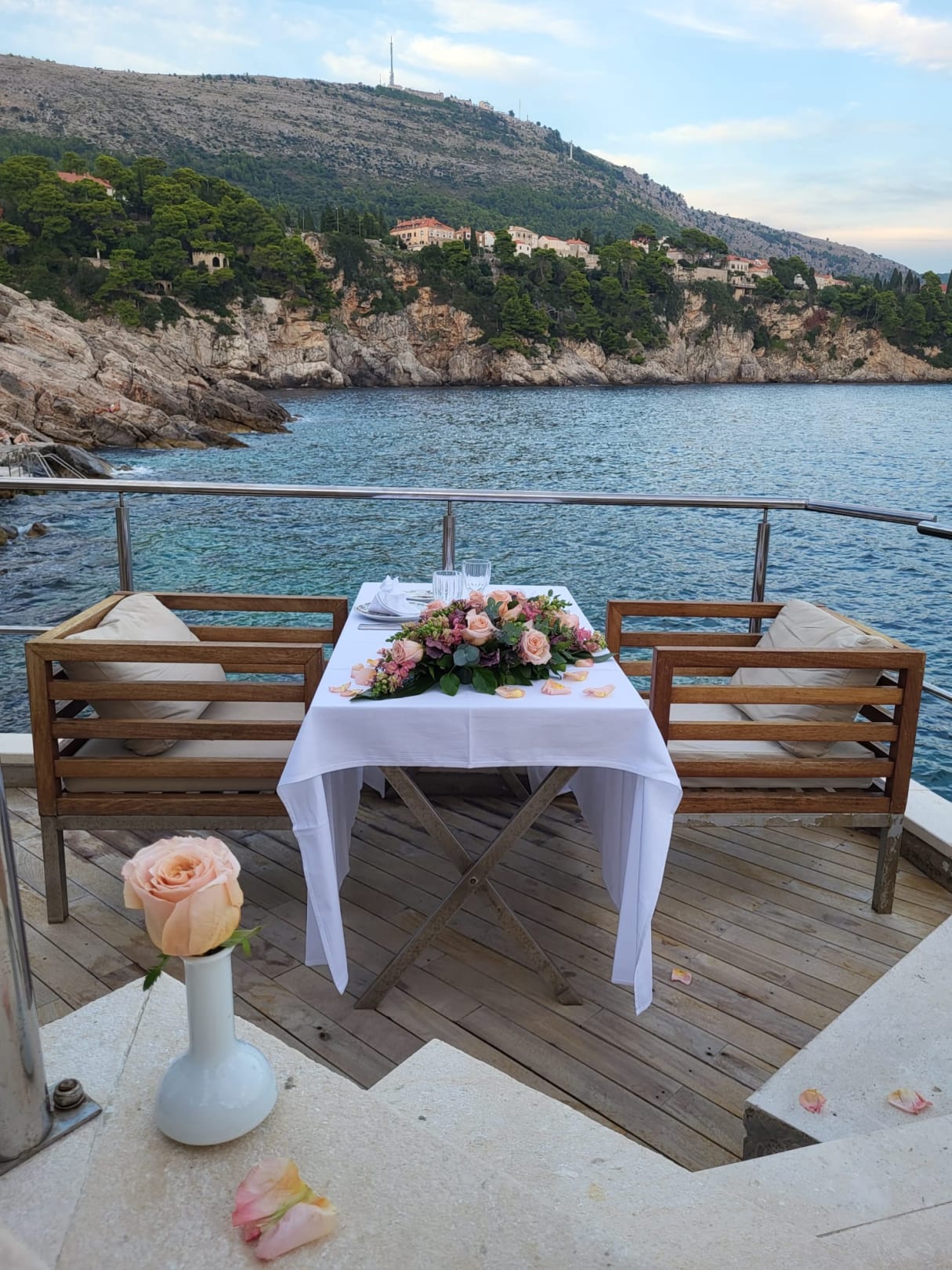 Zu unserem ersten Hochzeitstag hat uns das Team von Rixos sehr schön überrascht. Mit diesem herrlichen Tisch hätten wir nicht gerechnet! Wir hatten ein super Abendessen, haben viel gelacht mit den Kellnern und haben die Aussicht sehr genossen.