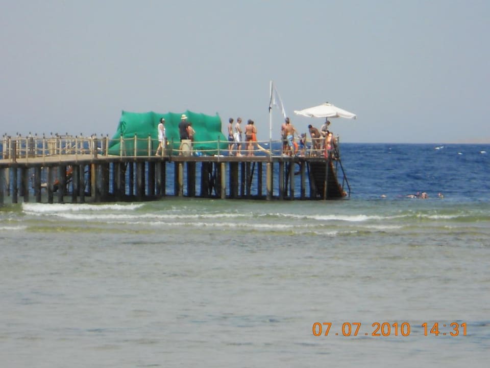 Steg welcher vom Strand "hinter" das Riff führt.