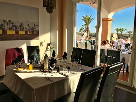 Hauptrestaurant mit schönem Ausblick auf Düne und Meer