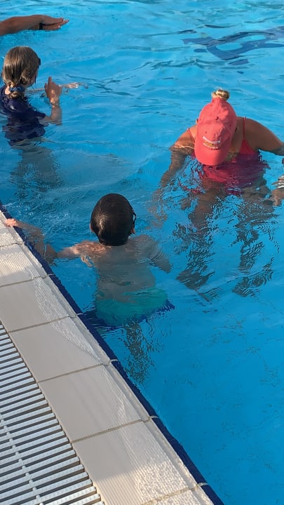 Hauptpool mit der Sharky-Schwimmschule. Top