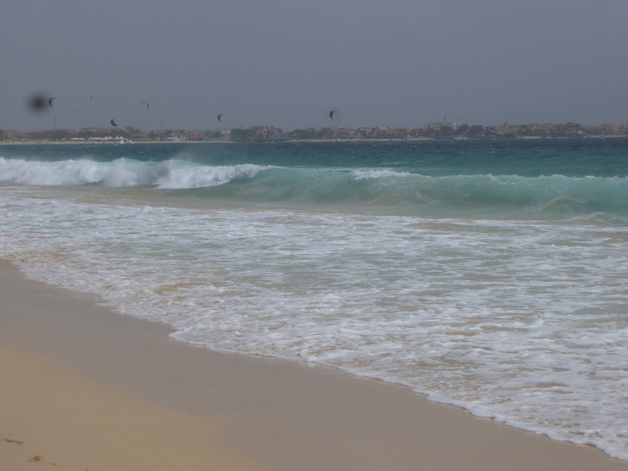 Blick auf die nicht zu unterschätzende Brandung im Meer. Ein Trost: der Wind ist meist auflandig