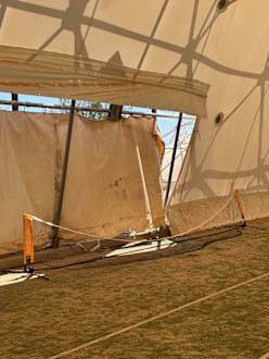 Eine der Tennishallen. Leider etwas in die Jahre gekommen