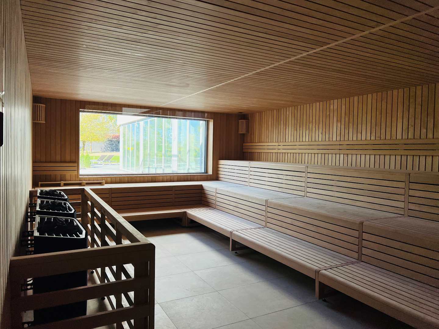 Riesige Sauna mit Panorama-Fenster