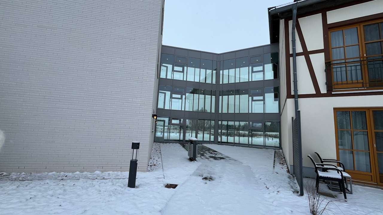 Übergang zum Neubau mit separatem Eingang.
