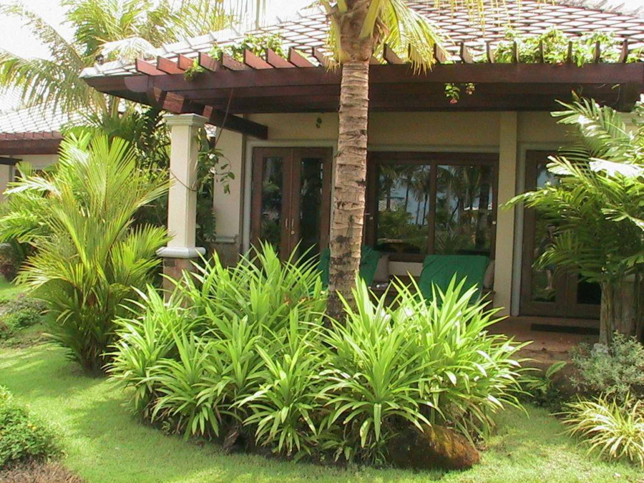 LagoonVilla 052Auf der Terrasse ist eine vor Sonne/Regen geschützte "Kuschelecke" und davor sind zwei breite Liegen. Handtücher sind immer da oder werden auf Wunsch gewechselt. In der Lagoone sind hunderte von Kois, ein Paar schwarze Schwäne und eine Ente (die glaubt, auch ein Schwan zu sein)