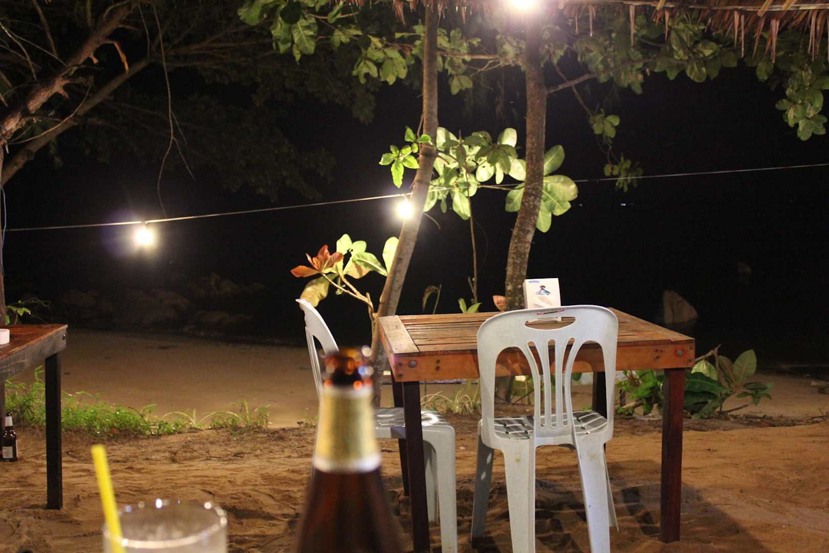 Typisches Strandrestaurant links neben dem Hotel