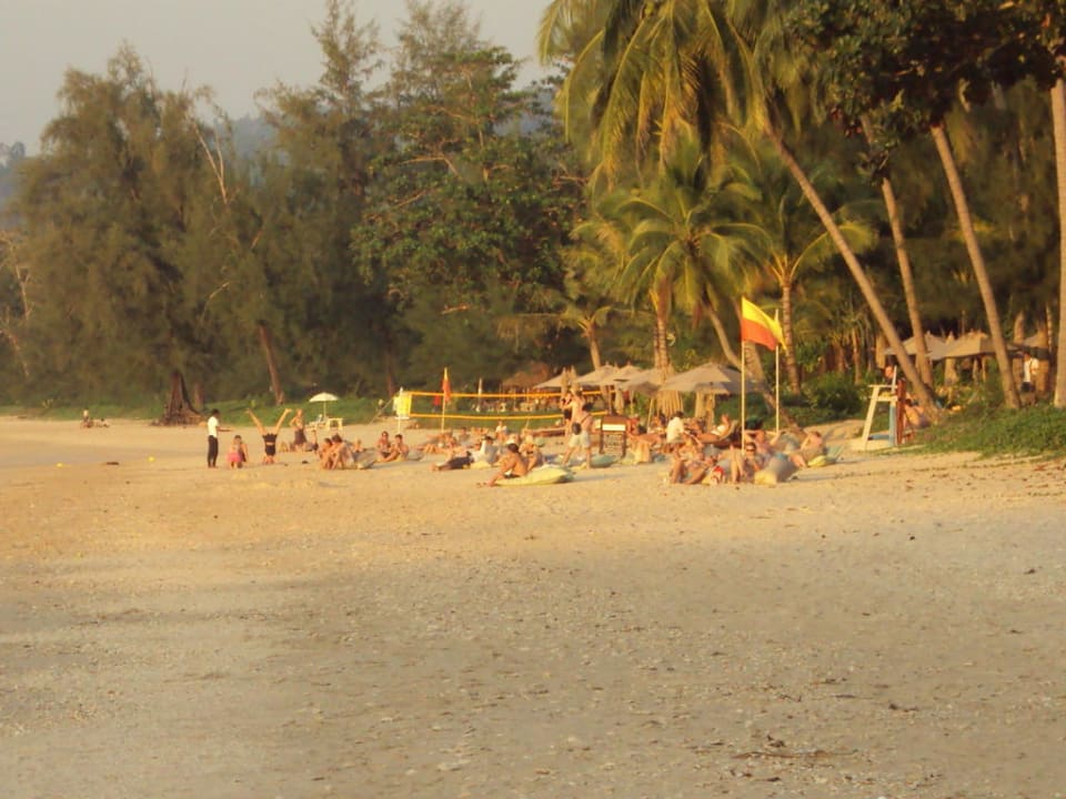 Strandtreiben beim Sonnenuntergang