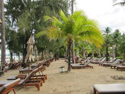 Die vielen bequemen Holzliegen am frühen Morgen!
