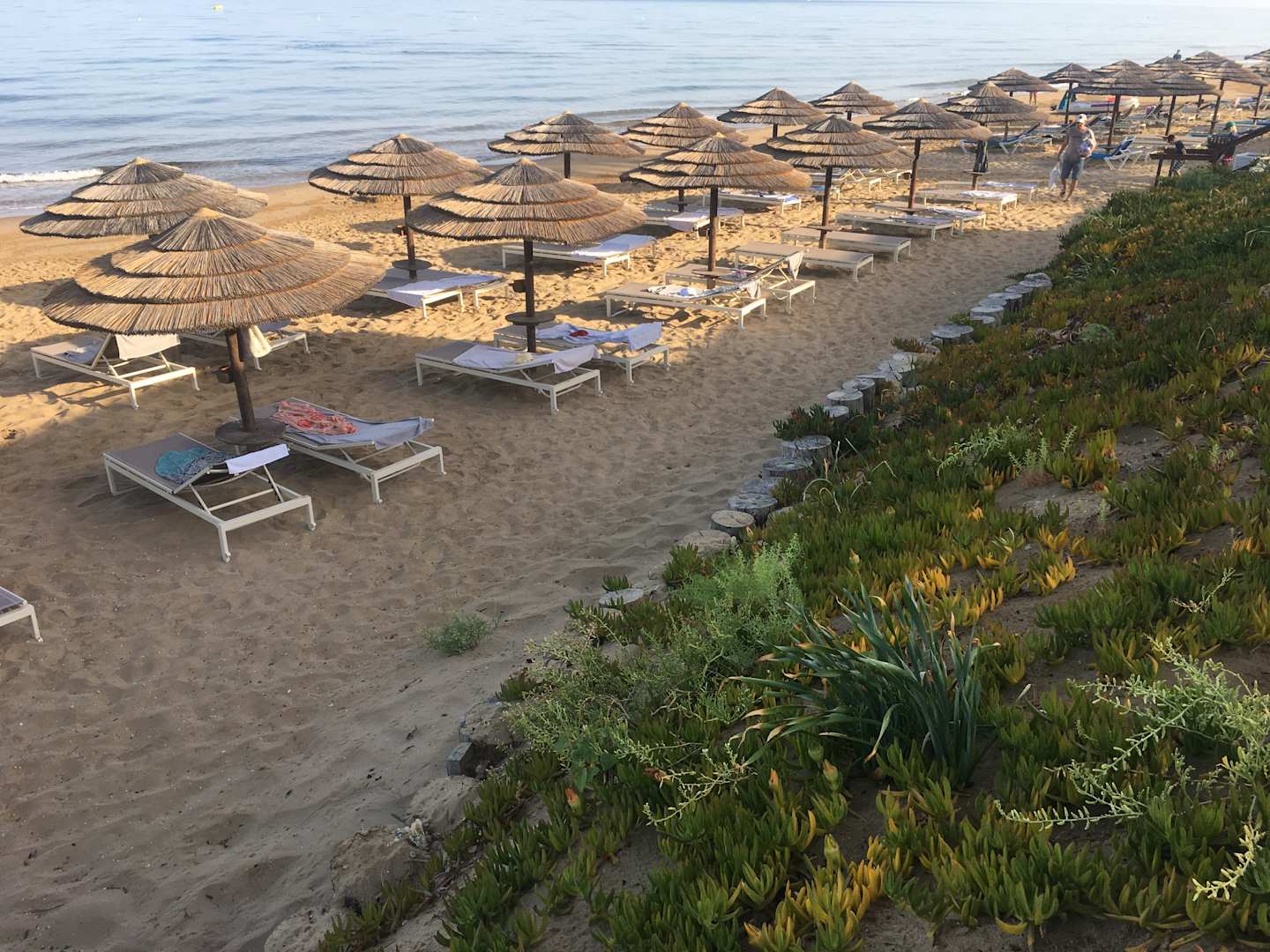 Morgens 8:00 Uhr am Strand, alle Liegen „reserviert“, aber kaum jemand am Strand...