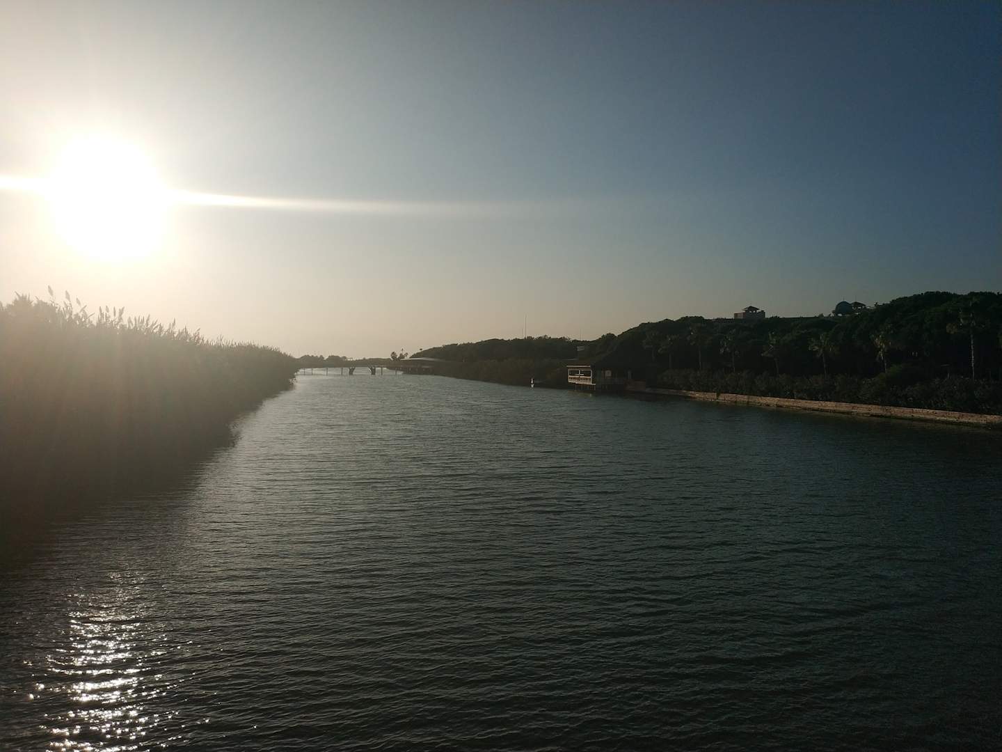Blick auf den Fluss, rechts zu sehen die wunderschöne Sportfläche (WellFit-Ebene am Fluss)