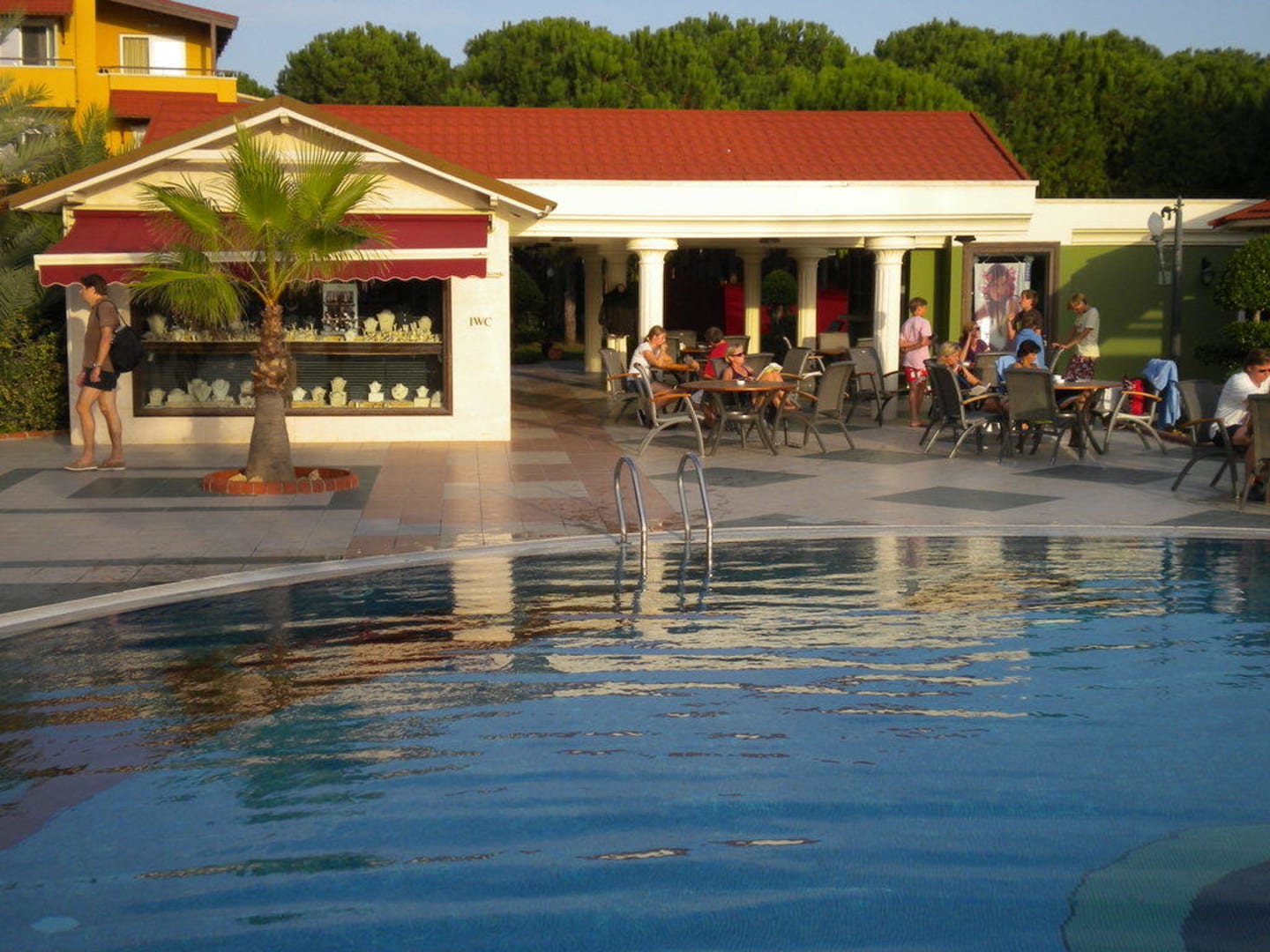 Blick auf die Läden am Pool (unter anderem Juwelier)