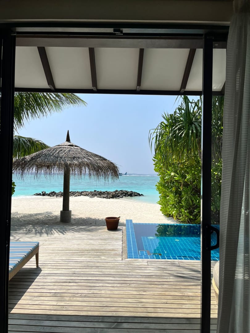 Terrasse mit eigenem, kleinen Pool des Strandbungalows 5008