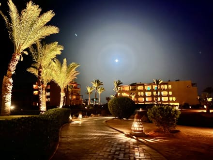 Beleuchtete Hotelanlage am Abend