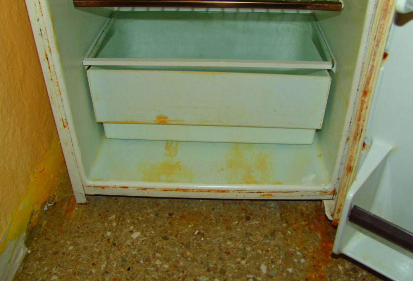 Der Kühlschranksah aus, als wenn er jahrelang schon draußen auf einem Schrottplatz gestanden hätte. Das war einfach ekelhaft. Weitergehnder Kommentar wohl überflüssig.