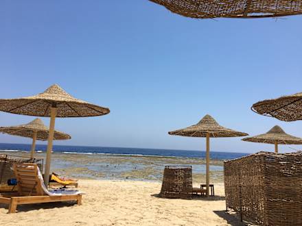 StrandFreie Liegen zu jeder Tageszeit! Hinter dem flachen Strandeinstieg, kommt das Hausriff mit tieferen Wasser, daas man über den Steg begehen kann