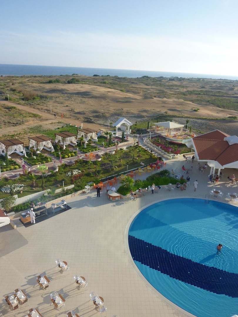 Blick aus dem 3.OG auf Pool und Meer