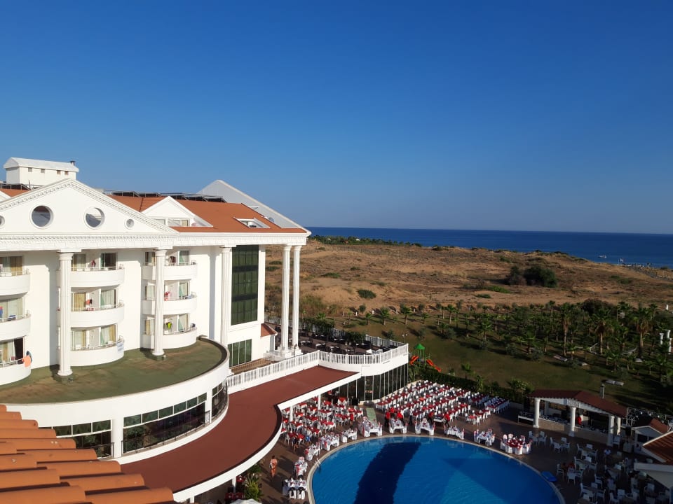 Das war die Aussicht auf Strand, Pool, Essensbereich und das Meer